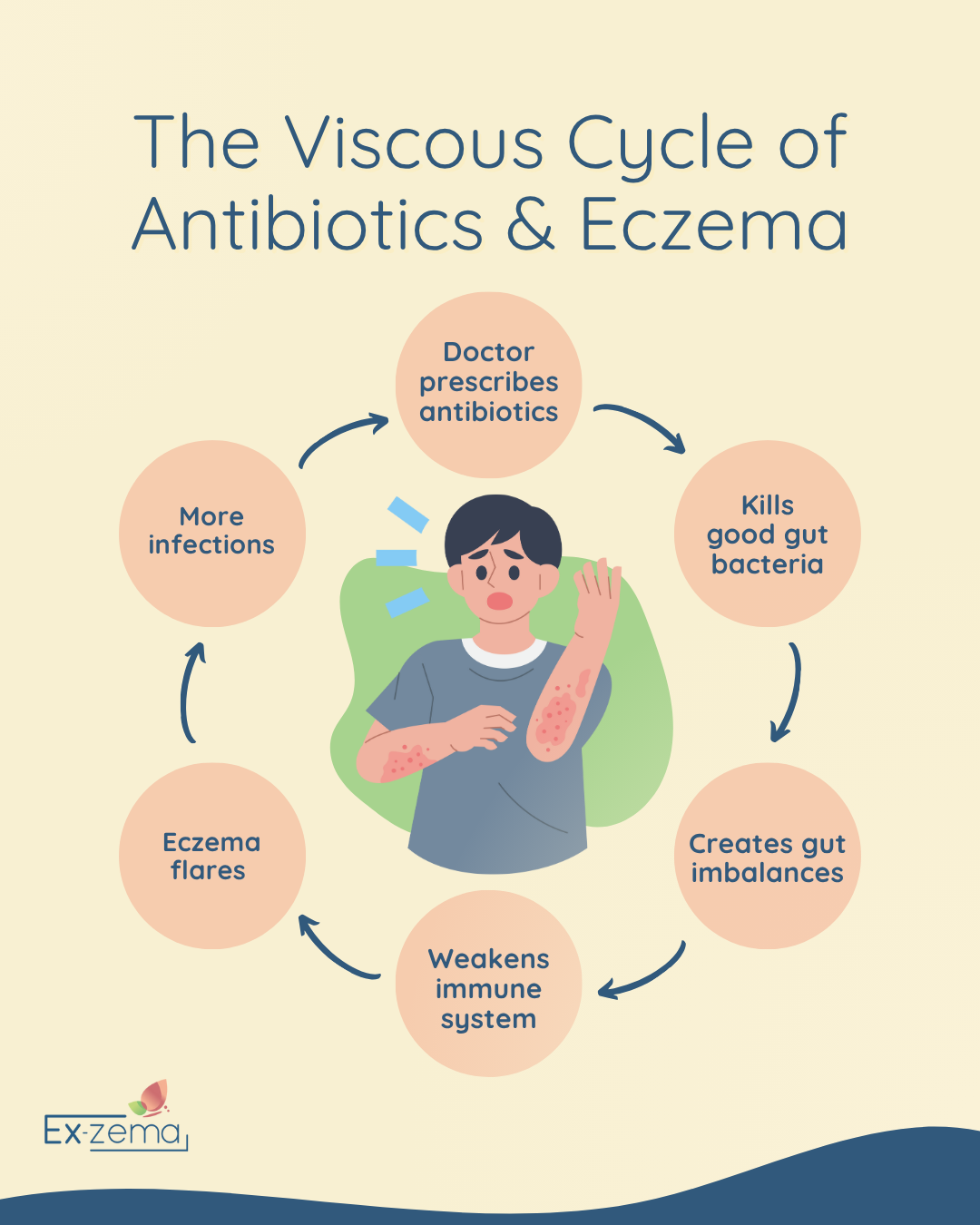 Frequent antibiotic use disrupts the balance of good bacteria in the gut, weakening the immune system and triggering inflammation. This imbalance, known as gut dysbiosis, can make skin conditions like eczema much worse.
